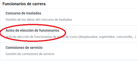 Una vez se ha accedido a PADDOC, la inscripción al Concursillo se realiza en "Actos de elección de funcionarios"